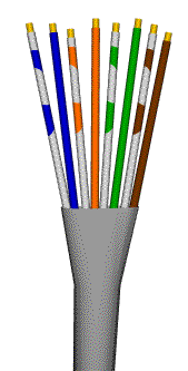 The pairs of wires in UTP cable are colored so that you can identify the same wire at each end. Furthermore, they are usually color coded by pair so that the pairs can also be identified from end to end. Typical CAT5 UTP cables contain 4 pairs made up of a solid color and the same solid color striped onto a white background. The most common color scheme is the one that corresponds to the Electronic Industry Association/Telecommunications Industry Association's Standard 568B.