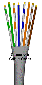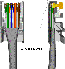 The two ends look like this: Standard End Crossover End Pin 1 White/Orange Pin 1 White/Green Pin 2 Orange Pin 2 Green Pin 3 White/Green Pin 3 White/Orange Pin 4 Blue Pin 4 Blue Pin 5 White/Blue Pin 5 White/Blue Pin 6 Green Pin 6 Orange Pin 7 White/Brown Pin 7 White/Brown Pin 8 Brown Pin 8 Brown